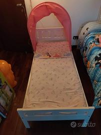 Vendo lettino allungabile Ikea con materasso, spondina e capottina rosa (facoltativa). Lunghezza 165 cm, larghezza 75 cm, altezza 34 cm, altezza testiera 68 cm, altezza pediera 47 cm