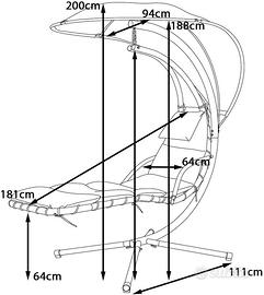 Dondolo da esterno completo di cuscino in poliestere con spessore di 5 cm, top in poliestere da 180g/mq spalmato in pvc, per offrire un meraviglioso relax nelle giornate estive.