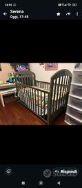 Bellissimo lettino, usato pochissimo, in legno pregiato.Completo di materasso.