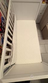lettino in legno bianco con due sponde, materasso e paracolpi. misure 60×120cm