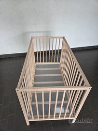 Lettino da bambino in faggio Ikea Sniglar 60x120 altezza 80cm con materasso SLEEPRYS KINDER AIR in schiuma certificato 60x120x14, sfoderabile, traspirante e antiacaro. In aggiunta piumino Chicco con parure completa (sacco , federa e lenzuolo)