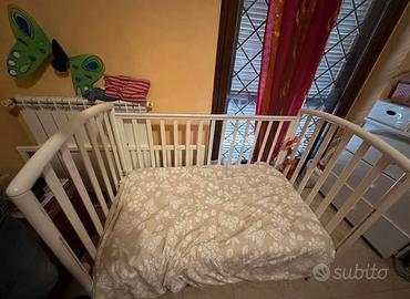 Lettino bianco con sponda, con due cassetti, toghe in legno. Come nuovo.