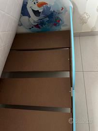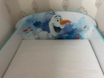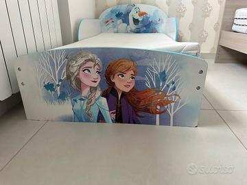 lettino bimba eta 2-5 anni tema elsa e frozen completo di materasso misure lunghezza 146 cm larghezza 74 cm altezza 30 cm piedi, 60 capoletto