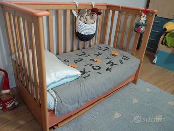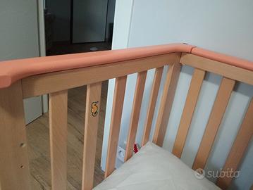 -lettino con sbarre , si può mettere il materasso a varie altezze , abbassando la sbarra come fosse una next to me, comodissima.