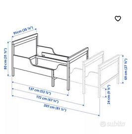 Struttura letto allungabile e doghe, Linea SUNDVIK by Ikea, colore bianco, misura 80x200 cm, con materasso .