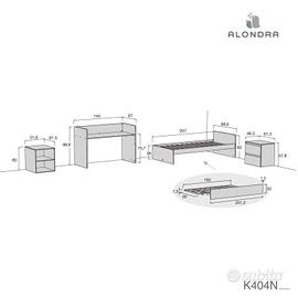 Fase 3: Il lettino trasformabile può essere smontato e trasformato in 4 diversi mobili per la cameretta junior: un letto 90×200 cm, un comodino con 3 cassetti, un book libreria con ruote e una scrivania.