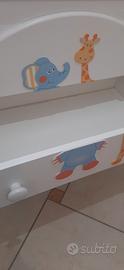 vendesi lettino con sbarre e cassettiera fasciatoio Pali linea Gigi e Lele. il lettino non è in foto in quanto smontato (foto solo della testata) ma è completo di materasso paracolpi e piumino.