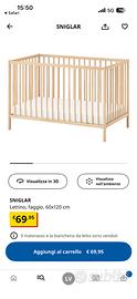 Vendo lettino SNIGLAR con materasso a molle JATTETROT, tutto incelofanato e igienizzato. Pulito e come nuovo perche quasi mai usato.