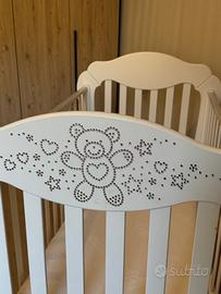 Vendo lettino baby expert modello swaroski che puo diventare anche dondolo togliendo le 4 rotelle. In regalo anche il materasso e coprimaterasso . Ritiro a carico del cliente. Misure lettino : 70 profondita Lunghezza 130