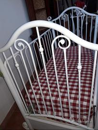 lettino in ferro battuto, munito di due materassi , di cui uno nuovo. compreso di federe. come foto. si può utlizzare anche come divanetto per cameretta o giardino