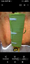 lettino da campeggio mai usato completo di borsa da viaggio con rotelle e tasca laterale di apertura