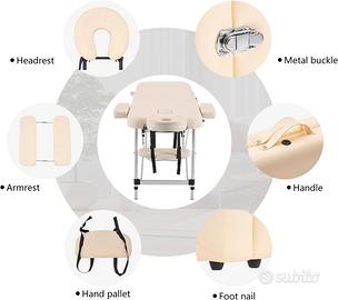 Lettino da massaggio professionale pieghevole e portatile, ideale per massaggi a domicilio, estetisti, fisioterapisti e uso personale. Realizzato con materiali di alta qualità, garantisce robustezza e comfort durante l'utilizzo. Struttura in alluminio leggera ma resistente, facile da trasportare grazie alla pratica borsa inclusa.