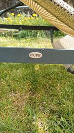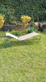 Lettino da sole unopiu' in ferro battuto con rotelle, schiena e gambe inclinabili, in ottime condizioni. possibilità di trasporto previo accordo.