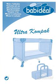 Lettino da campeggio pieghevole marca Babideal con materassino, borsa per il trasporto e scatola originale.