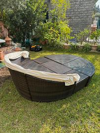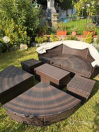 Vendo divano rotondo a isola scomponibile da esterni, da usare come prendisole o come poltrone separate. È stato usato pochi anni ed è in ottime condizioni ( tenuto coperto se non in uso e al chiuso dall'autunno alla primavera). Vendo in vista di un riallestimento del giardino. Disponibile a valutare consegna a carico del venditore in Piemonte, Liguria, Lombardia e Emilia Romagna