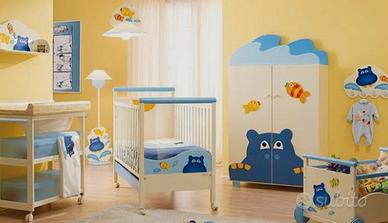 Vendo bellissimo set completo di arredi per cameretta marca Azur (Lettino e Fasciatoio/Comò) della collezione SAVANA, ideale per bambini da 0 a 3/4 anni.