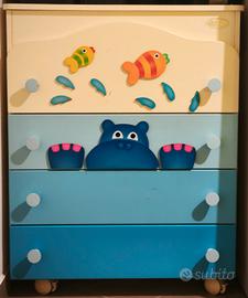 Design Unico: Frontali decorati con il simpatico ippopotamo e pesciolini, colori vivaci (celeste e blu verniciatura atossica/ecologica).