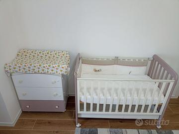 Lettino compreso di materasso e paracolpi + fasciatoio con vasca per il bagnetto.