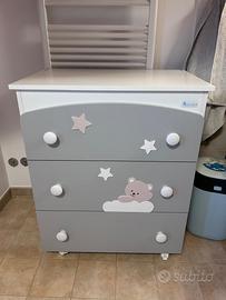 Il fasciatoio è compreso di ruote che volendo si possono togliere e vaschetta interna per il bagnetto. Le foto corrispondono all originale. Tenuto immacolato. Ritiro a mano. Prezzo leggermente trattabile.