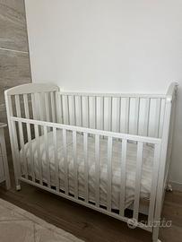 Lettino erbesi con spondina laterale con 2 altezze da poter scegliere in base alle proprie esigenze, doghe anch’esse regolabili in 2 altezze, 2 cassetti estraibili, materasso incluso nel prezzo, su richiesta piumino copri piumino (come da foto)e paracolpi