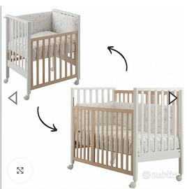 Vendo splendido lettino Evolution di Erbesi nuovo ( montato solo per vederlo ma mai utizzato),realizzato in legno massello di faggio, progettato per accompagnare la crescita del tuo bambino dalla nascita fino ai primi anni. Caratteristiche principali: * Trasformabile da culla a lettino * 4 ruote piroettanti con freno per spostarlo facilmente * Rete regolabile in 9 altezze * Struttura robusta e sicura * Design moderno bianco/legno naturale Incluso nel prezzo anche il materasso nuovo Dimensioni e peso dimensioni culla: 84,5 x 65,5 x 97 cm (lunghezza x profondità x altezza) dimensioni lettino: 127,5 x 65,5 x 97 cm (lunghezza x profondità x altezza) peso: 19 kg