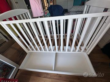 Lettino in legno con una sponda fissa e una regolabile a due posizioni