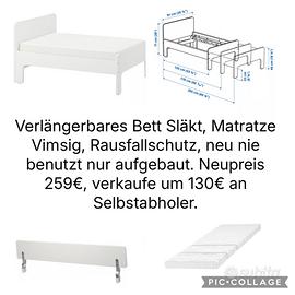 Vendesi lettino ikea allungabile. Usato poco per cambio camera. Si vende completo di materasso e spondina. Ritiro a mano direttamenre da parte dell’acquirente. Il lettino verra smontato e consegnato smontato e imballato.