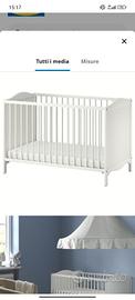 VENDO LETTINO IKEA MODELLO SMAGORA DI COLORE BIANCO,MISURE 60x120 CM, DAL VALORE NUOVO DI 139 EURO SUL SITO IKEA,USATO MA TENUTO BENE,INSIEME DÒ ANCHE IL MATERASSO IN REGALO.aIL TUTTO VENDO A 70 EURO NON TRATTABILI.