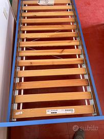 Lettino da bimbo con testata blu, rete Sultan lade 70x160 ortopedica +materasso 30 euro la rete 20il materasso praticamente nuovo di lana . Vendo anche separati Per informazioni contattatemi!