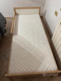 Lettino Ikea Sniglar per bambini con base a doghe in faggio 70 x 165, completo di materasso sfoderabile cm 69 x 160 h cm 10, come nuovo, e cuscino basso cm 32 x 65 h 2,5.
