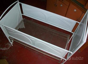 Lettino in ferro del 1906, smontabile in tutte le parti essendo fatto a pannelli incastrati in ferro, in origine di colore nero, nessun elemento è arrugginito, compreso di rete in acciaio originale. Ideale come elemento di arredo, fioriera o esposizione. Lettino acquistato nel 1906 all'Esposizione Internazionale di Milano e usato per generazioni. La spedizione economica non è disponibile per via del peso e dell'ingombro, preferibilmente consegna a mano nella zona vercellese, novarese, biellese, verbano, astigiano o varesotto