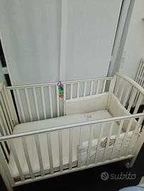 Lettino in legno con sbarre mis. 80x110 cm con cassetto e completo di materasso, colore bianco.