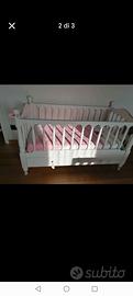 Lettino in legno massello bianco per neonati, con due cassetti. È inclusa rete e materasso su misura nuovo. Le dimensioni sono: larghezza 145cm, profondità 75cm e altezza 90 cm. Si prega di contattarci per eventuale trasporto.