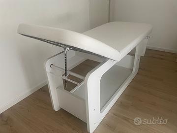 La testa è regolabile e con piano di appoggio