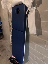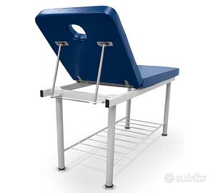 Marca: Quirumed. Lettino da massaggio fisso, 2 sezioni, con struttura in acciaio, colore blu, similpelle, foro facciale, cuscino, portarotolo, vassoio inferiore, fino a 180 kg
