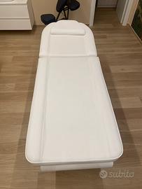 Vendo lettino per massaggi professionali in legno con testata regolabile e asta porta rotolo, con scaletta compresa e due rotoli in carta. Scaletta con gradini imbottiti.