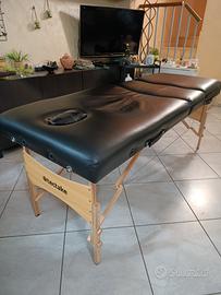 Lettino massaggi mis. 190x70 con altezza materassino 10cm. È un lettino professionale, anche se pieghevole è più pesante degli altri, non dondola e non cigola, perché molto più stabile. Il prezzo è di soli 30euro perché è rovinata la pelle come da foto, ma la sua funzionalità è ottima.