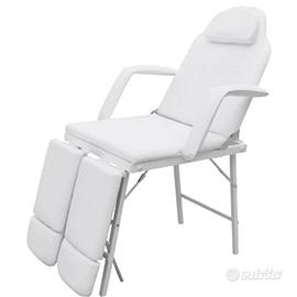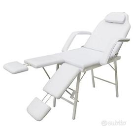 Vendo lettino da estetista mai usato per inutilizzo. Non lo posso più tenere per mancanza di spazio. Questo lettino è rivestito in similpelle bianca resistente a oli e creme. Struttura in acciaio. Poggiatesta e poggiapiedi inclinabili verso il basso fino a 45 gradi. Cuscini e braccioli rimovibili.