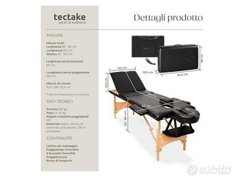 Lettino Massaggio 3 zone, Pieghevole, Portatile, Rivestimento Vinile Idrorepellente, Lettino con Poggiatesta Rimovibile, Comodi Braccioli, Borsa per Trasporto Inclusa - Nero Cellulare 3423929089