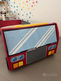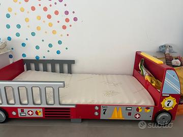 Lettino in legno camion dei pompieri compreso di materasso Aloe Dream antisoffocamento 70x140