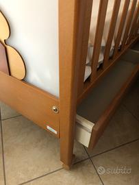 Nuovissimo e poco usato lettino MBB in legno con cassettone e ruote per facilitare gli spostamenti completo di materasso specifico adatto ai più piccoli. Il lettino è completamente smontabile per un trasporto rapido e veloce.