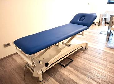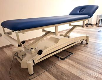 Lettino da visita e trattamento, 2 sezioni, schienale con regolazione altezza elettrica. Usato, in ottime condizioni. Ideale per studi medici e fisioterapici. Struttura robusta e stabile in ogni posizione e altezza, grazie al doppio braccio di sollevamento. Altezza regolabile elettricamente Motore elettrico integrato per la regolazione dell’altezza fino a 180 kg Caratteristiche tecniche: • Dimensioni: 200 x 65 cm • Altezza regolabile elettricamente: da 50 cm a 105 cm • Schienale regolabile • Foro facciale • Portarotolo • Capacità di sollevamento: 180 kg • Marca motorino elettrico: HANNING© Trasporto: RITIRO IN LOCO O POSSIBILITA' DI ACCORDI PRIVATI PER LA CONSEGNA