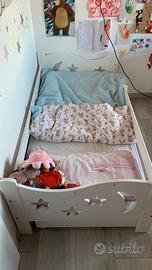 Lettino Montessoriano Bianco, compreso di doghe in legno e materasso. Usato ma tenuto molto bene. 164 x 84 cm - altezza materasso da terra circa 30 cm.