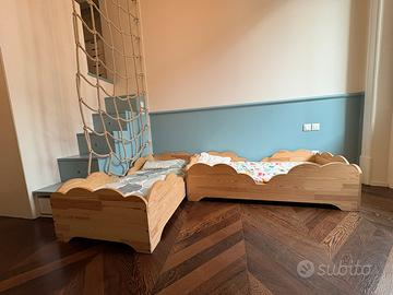 Vendo lettino montessorianio (in coppia o singoli) modello Riga della marca Mon lit Cabane. Misura 142x72. Altezza massima della spondina 42. Materasso memory foam compreso nel prezzo. Prezzo 180 cadauno.