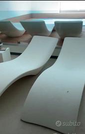 Le forme arrotondate, morbide ed accoglienti caratterizzano questo lettino made in Italy realizzato in Poleasy®, materiale plastico innovativo, nel quale sono quasi totalmente assenti le microporosità superficiali.