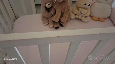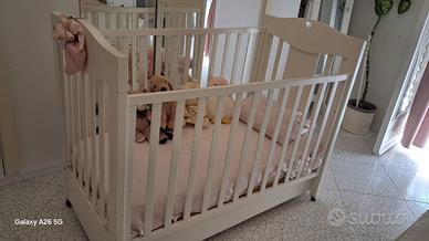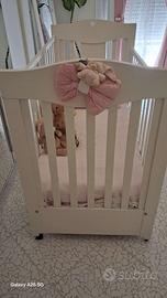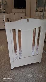 bellissimo lettino (o "culla/lettino") per neonato/a della prestigiosa marca Nanan, modello con intaglio a cuore sulla testiera. Colore bianco laccato, un classico senza tempo per la cameretta.