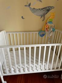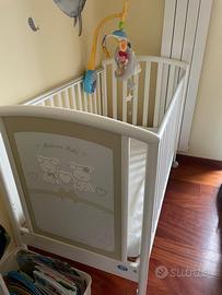 Vendo lettino in legno marca PALI, completo di materasso nuovissimo mai usato più set biancheria da letto composto da piumome, due completi sacco x il piumone, trapuntina leggera 3 lenzuoli completi , giostrina e maeteassino x fasciatoio.