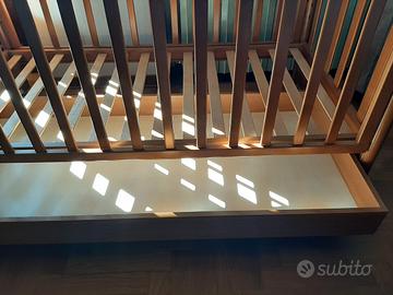 Vendo lettino Pali in legno con comodo cassetto inferiore Materasso incluso Comode ruotine per lo spostamento Sbarre laterali che si possono abbassare Testata carinamente decorata con due orsetti 🥰