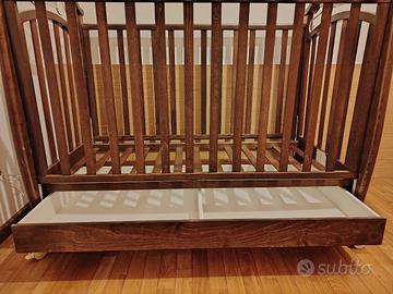 Per inutilizzo vendo lettino per bambini misure standard (120x60 cm) color noce anticato, usato ma in buone condizioni, già smontato.