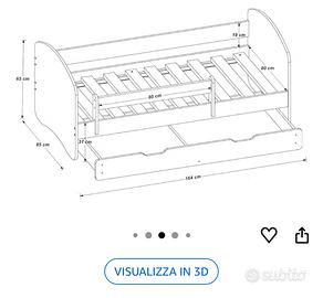 Lettino per bambini e bambine 160x80 con spondina, cassettone e materasso, usato per sei mesi comprato su amazon a 209€ solo il lettino e 70€ il materasso